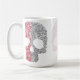 Caneca com crânio estilizado, nas cores vermelho e cinza. Linda, diferente e estilosa...