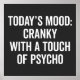 "Dagens stämning: "Cranky with a touch of psycho", roligt citat.