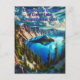 En hisnande bild av Crater Sjö i Oregon som visar det pulserande blå vatten som avspeglar det dramatiska molnet. Den ikoniska guidön ligger i huvudsak mitt i sjö, och lägger till bildlandskapet.