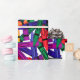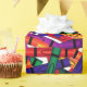 En grafisk illustration av party kritor av konstnären/designern Charmaine Paulson på ett färglöst presentemballage för barn. ©2015charfastepulong
