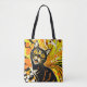 Färgfull abstrakt porträtt av en svart katt för en kattlover i en återanvändbar säck