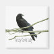 En magnet med kråka sitta på gren. Ord "Crazy Kråka Dam" är under.