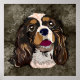 Unik galen Crazy Kung Charles Cavalier hund med djärv, färglös abstrakt mönster på brun bakgrund. Populär med hundälskare, djurälskare och hundälskare för rädding.