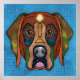 Unik Labrador Retriever galna hund ansikte med fet, färglös abstrakt mönster mot blå bakgrund. Populär med hundälskare, djurälskare och hundälskare för rädding.