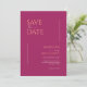 Dessa 5 x 7-tumskort för att spara datumkorten har en minimalistisk utformning i kräm brev på en magenta med platshållare för det förlovade paret namn, bröllop datum och platsuppgifter. På baksidan finns en punkt där du kan infoga ditt favoritfoto med paret namn och bröllop.
