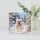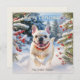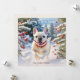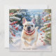 Skicka hund charm till vänner och familj med det här Fransk julkortet för bulldog. Den gräddjackat hund bildas lyckligt genom ett snölandskap, med evergreen träd och röda bär, på en solig vinterdag. Hälsning "God jul är överst i elegantens manustypografi, medan texten nedanför hund kan vara personlig med din familj namn eller andra ord. Kortets baksida är en vit vinter. Ett val av snyggt för hundägare och djur älskare.