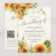 Modern rustic botanical sunflowers budget affordable all in one sage green wedding invitation with custom photo, QR code to website, and online rsvp featuring a chic handwriting calligraphy script. +++++ Suitable for rustic modern summer or autumn fall garden or outdoor backyard farmhouse barn weddings.
