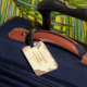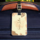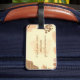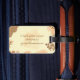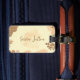 Grädde och brun minsta bagagetagg av personlig. Namn, mobila adress och e-post kan anpassas.