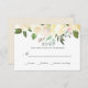 Den här elegantens botaniska OSA kort är designad att samordna med vår samling av Cream och Ivory bröllop och har en gren av vattenfärgade vita blommor, vilket gör att du kan nå önskat svar och datum. Kort tillbaka till koordinerad kräm färg. En modern och klassam utformning för elegant chic vår bröllop eller trädgård eller utomhusbruk firande. Färg: grönt grön, rosa, beige, champagne, vanilj, persika, vit.