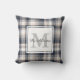 Rustik och mysigt kräm och ljust grått färgad pläderade mönster kuddar med lätt grått monogram brev och fullt namn i mörk grått-manus. Baksidan av den här kudden är fullt som kallas mönster.