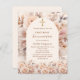 En modern, snyggt girig inbjudan till en första gemenskap. Glim, persikobakgrunden, ram, färgad, dekorerad med blommor av färgad i krämen. Anpassa och lägg till ditt namn och information. 1 lakan = 1 inbjudan tryckt kant till kant.