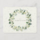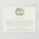 Kort för gräddplatt hölje i bröllop för reseinformation i bröllop eller för anvisningar om mottagningen sker på en annan plats. Med en elegant buquet/poken av handmålade snöbär och eukalyptus på framsidan och en krans på baksidan av kortet. All text är helt redigerbar och de spridda punkterna längst fram och bakåt kan tas bort före beställning om du vill. Det här kortet finns med alternativa botaniska utformningar, i porträtt-format och i olika färger. Visa Samlingen i min butik om du vill se alla alternativ och samordningsposter.