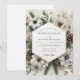 This design features a muted palette with delicate white blooms and hints of brown and green foliage. A serene, frosted aesthetic creates an elegant and ethereal mood for your special day.