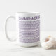 Separate designs available for 11oz and 15oz mug. This modern purple and white hidden message mug is designed for personalization with meaning. An optical illusion conceals your custom words—visible only when mug is turned on its side. Add a name, nickname, or title at the top then embed a hidden message below using your chosen phrase. Whether it's a quote, a date, a lyric, or an inside joke, this is your chance to surprise someone with something personal and powerful. From romantic notes to funny sayings, it’s an unforgettable gift that blends style and sentiment in one clever design…… PERFECT FOR: An inspiring quote like from a manager or mentor, A favorite song lyric or title that motivates your study buddy, Key dates to mark work or school milestones, Inside jokes shared with a colleague, teammate, or project partner, Classic sayings for coworkers needing a lift, Work or study related phrases from peers or office pals. Also ideal for: students, teachers, coworkers, interns, study partners, team leaders, office besties and anyone juggling deadlines with caffeine.