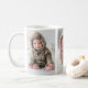 This custom coffee mug features three spots for photos—one on each side and one on the back—perfect for showcasing your favorite memories. Whether it’s a new baby, family moments, pets, or special occasions, this mug turns your cherished photos into a practical, everyday keepsake. The layout keeps the images neatly arranged for a balanced, modern look, while the rest of the mug remains plain. A thoughtful gift for new parents, grandparents, birthdays, holidays, or any special occasion.