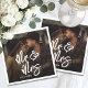 These custom wedding napkins feature a full photo background with a subtle black gradient behind the text, ensuring “Mr. & Mrs” in large white handwritten script stands out beautifully. The wedding date appears at the bottom left in a clean serif font for a classic and balanced touch.
