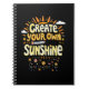 "This bright and uplifting design features the inspirational phrase 'CREATE YOUR OWN SUNSHINE' in warm, hand-drawn yellow and orange lettering. The text is framed by stylized sun rays at the top and surrounded by a field of colorful, whimsical flowers and small clouds at the bottom. The overall aesthetic is cheerful, artistic, and encouraging, promoting optimism and self-reliance. This versatile design could be used on products aimed at inspiring happiness and positivity. Imagine it on stationery, motivational wall art, charming greeting cards, or bright apparel and accessories."