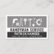 Design features grey layers with a white piece that is encapsulated by another rectangular white frame. At the top is an array of handyman tools. Just below this is the business name "HANDYMAN SERVICE" (in grey) which you can change. At the base lies your prestigious name and contact details in white.