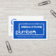 A blue cover is encapsulated by a white rectangular frame. It features a creative "plumber" water pipe frame design with your prestigious name at the top. Near the base of the card is a slogan caption which you can change.