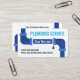 Cover features a water pipe design that is leaking at its joint. At the center of this pipe is a slogan caption "Stop The Leak" which you can change. Over at the top is the business name "PLUMBING SERVICE" in blue with the contact details near the base.