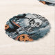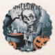 En scen Halloween med ett skelett inuti en pumpa, omgiven av inslag.