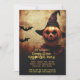 Den här inbjudan från Halloween fest har en läskig och elegant design som är centrerad kring en lömsk clown med en pumpa ansikte. Kronans skakade pumphuvud är full av en svart hatt, ge ett olycksbådande och mystiskt utseende. Flina på pumpen ansikte är vriden och hotfull, med glödande ögon som förstärker det skämda blodet. Bakgrunden är en mörk, en läskig skog med svart, tvinnat träd som verkar närma sig figur, vilket ökar den oroväckande atmosfären. Färg blandar djupt, skuggande med hemlig orange som kompletterar pumpen ansikte och skapar en verkligt sund scen. Längst upp på framsidan står det i texten: "Du är inbjuden till en Halloween fest!" Texten är djärv och spokal, står ut mot mörkens bakgrund och matchar det grå clown-temat. Under bildtexten finns det utrymme för information om anpassadet, t.ex. datum, tidpunkt och plats för party, vilket gör att du kan anpassa inbjudan till evenemanget. På framsidan grund finns det en extra-rad för information om OSA, där du kan lägga till kontaktuppgifter och en OSA tidsfrist, och skapar det lätt för gästerna att svara. Typsnitt och färg kan anpassas så att de stämmer överens med stil, vilket gör att man kan lägga till en personlig beröring. Baksidan av inbjudan fortsätter med samma mörk av skogsbakgrund, med en pumpad clown och dess svarta hatt som subtilt ramlade in i konstruktionen. Det finns extra utrymme på baksidan för extra-text, där du kan lägga till ytterligare instruktioner, speciella anteckningar eller ytterligare party-detaljer som "Förbered för en natt av tricks och slitningar!" eller "Costumes är ett måste för en spooky bra tid!" Den här inbjudan blandar ett läskigt Halloween-tema med praktisk information, perfekt för att ange tonen för ett oförglömligt party.