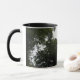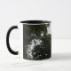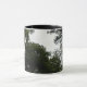 Detta vackra mugg har ett foto som tagits från en tät skog. Bilden visar träd och ett litet område av grått himlar. Resultatet är en ö- och atmosfärscen. Utformningen visas på ett svartvitt ringrosa stil-kaffe mugg, men finns också på flera andra stilar och färg i muggar.