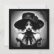 Personlig Halloween-inbjudningar. Gråtkvinna i svart klänning och svart hatt med svart ro-AI-konst. generativeinnehållande