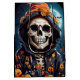 Giftväska med en illustration av ett skelett som bär en hovad jacka med en orange-häxhatt överst. Omringad av söta och skämtsamma pumpor. En glödande måne i ryggen med en enkel fladdermus-flygning i närheten. Roligt Halloween-design.