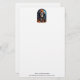 Papper med en illustration av ett skelett som bär en hatt med en orange-häxhatt på ovansidan. Omringad av söta och skämtsamma pumpor. En glödande måne i ryggen med en enkel fladdermus-flygning i närheten. Roligt Halloween-design.