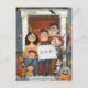 Det här är ett väldigt sött Halloween-vykort med en läskig familj med sina husdjur sitta på porten och en vit banderoll med ett anpassade-meddelande. Som standard står det i meddelandet "låt oss boo this!".
