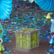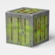 Ett karikatyrträ av grått låda med studerade kant i metall, inslaget i rostade kedjor förslutna av en padlock och ett giftigt glödande moln som sipprar ut mellan planksprickorna. Det har anpassadet röd text uppifrån och på sidorna. Roligt för din halloween fest- eller rollplay-session!