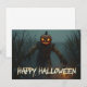 En olycksbådande pumpskallig fågelskrämma lurar i ett foggiskt kornfält och håller ett glödande ljus. Den här kyliga Halloween-grafiken fångar den ärliga trillen av spooky-säsongen, blandar mörker och festiv skrämma perfekt.