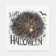 Det här Spindelnätet Halloween Pappersservett kommer att lägga till Whimsical Charm till ditt Festive Helgdag Bord! Artwork har en imponerande Cob-Webben med en Narly Spider som är på den. Fladdermus fyller Nattens Himmel. Vänstern säger: "Happy halloween".