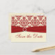 Detta elfenbensvita och röda damast-kort för att spara datum matchar de föremål som visas nedan.