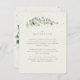 Ett krämfärgat, platt, vinterbröllopsinbjudningskort med en elegant stjälk av handmålade snöbär och eukalyptus på framsidan och en krans på baksidan av kortet. All text är helt redigerbar och de spridda prickarna på fram- och baksidan kan raderas innan beställning om så önskas. Detta kort finns tillgängligt med alternativa botaniska mönster, i liggande format och i olika färger. Vänligen se kollektionen i min butik för att se alla alternativ och matchande tillbehör.
