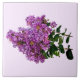 Ett kluster av pulserande lila blommor på en myrsköldpadda med känsliga petaler ställs mot en mjuk bakgrund med blek. Den arrangemanga kompletteras med mörk grönt löv, vilket ökar kontrasten och djupet.
