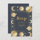 OSA kort i elegant kompletterar perfekt det berömda bröllop, som har en förfinad halvmånsutformning i måne som dess centrala inslag. Den kuperade måne, försedd med intrikat guld-folie, sätts mot en djup marin eller midnattsblå bakgrund, som påminner om en lugn natt himmel. Sprickade guld-stjärnor vrider runt måne och tillför en gnutta magi och sofistikering. Uppgifterna om OSAN presenteras i en kombination av modern kalligrafi och klassisk serif typsnitt, som är präglat av lyxig guld-folie för att matcha det berömda inslag. Kortet erbjuder en tydlig och organiserad layout för gästerna att svara, med alternativ för att acceptera eller avslå inbjudan, tillsammans med utrymme för alla kostpreferenser eller speciella förfrågningar. OSA kort är tryckt på premiumbeståndet, den släta djurbeståndet, och har en stark känsla, vilket säkerställer att den är i linje med den övergripande elegansen hos bröllop-stationens svit. På baksidan av kortet kan man se en liten fortsättning på stjärnan himmel mönster eller en solid marin bakgrund som kompletterar den sammanhängande utformningen. Denna OSA kort tjänar inte bara ett konkret syfte utan stärker också det berömvärda temat för bröllop och lämnar gästerna förutseende för ett magiskt och oförglömligt firande.
