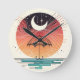 Crescent Måne Rain Boho Line Art Rund Klocka