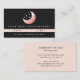 Celestial Ro Crescent Måne Stars Logotyp avtalskort för besökare. Den här eleganten har en modern företagsdesign för trendiget måne och stjärnor på en solid svart bakgrund. Anpassa anpassad design med egna detaljer.