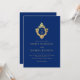 Crest Monogram Royalblå Falskt Guld Folie Bröllop Inbjudningar