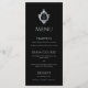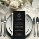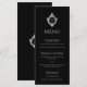 En elegant meny med en vintage-känsla, rekommenderas för ett bröllop med svarta och silver bröllopsfärger.