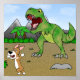 Hund är lika tokigt och taktfull som Pembroke Welsh Corgi är, och ändå tillräckligt smart för att veta att när man ser en Tyrannosaurus Rex, så är SPRINGA för ditt liv det intelligentaste sak att göra! Denna förhistoriska scen har en T-Rex-dinosaurier som växer mycket vid den lilla poochen när panikslagen och springa för den så fort som hans nubby ben kommer att försvinna! Lustigt corgi poster av Susan Stoneman.