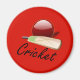 Cricket fladdermus och boll (märkt) på pulserande röd bakgrund