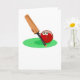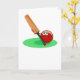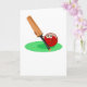 Cute tecknad illustrerar en cricket boll som håller en cricket boll. Bild finns tillgänglig på olika presenter och produkter. Kort för hälsning. Anteckningskort.