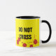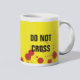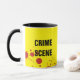 Gult mugg med två anpassningsbar fält "BROTTSSCENE", "FÅR INTE KOR". Blodfläckar.