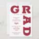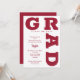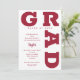 GRAD i fet krimson röd skrift kurvor runt kant om dessa inbjudningar till studentfesten för vit bakgrund. MATCHING-objekt i vår butik.