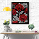 Den här sjudande teckningen har en djärv och vacker arrangemang av krypsanteman som ställs mot en dramatisk svart bakgrund. De invecklade detaljerna kring blommorna och löven skapar ett fängslande mönster som är perfekt för att ge lite elegans till vilket utrymme som helst. Den här designen gör säkert en påstående och gör dig ljusare hemma eller på kontoret.