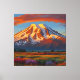 "Crimson Clouds över dalen" fångar den andningsliga skönheten i ett snö-skyddat berg som badats i gyllene solljus, inramat av livfulla vildblomsterängar. Ett serenlandskap där naturens färg blandas harmoniskt i skymningen.