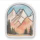 Crimson Ridge Awakens captures the bold stillness of a mountainous morning, where fiery earth tones meet snow-dusted peaks beneath a clear blue sky. The sharp outlines and softened watercolor washes give this landscape a stylized charm, while silhouetted pine trees in the foreground anchor the scene in quiet majesty. Framed by an arched top, the composition feels like a window to the wild—perfect for rustic homes, cabins, or modern adventure-inspired interiors. It invites a sense of strength, awe, and grounded beauty.